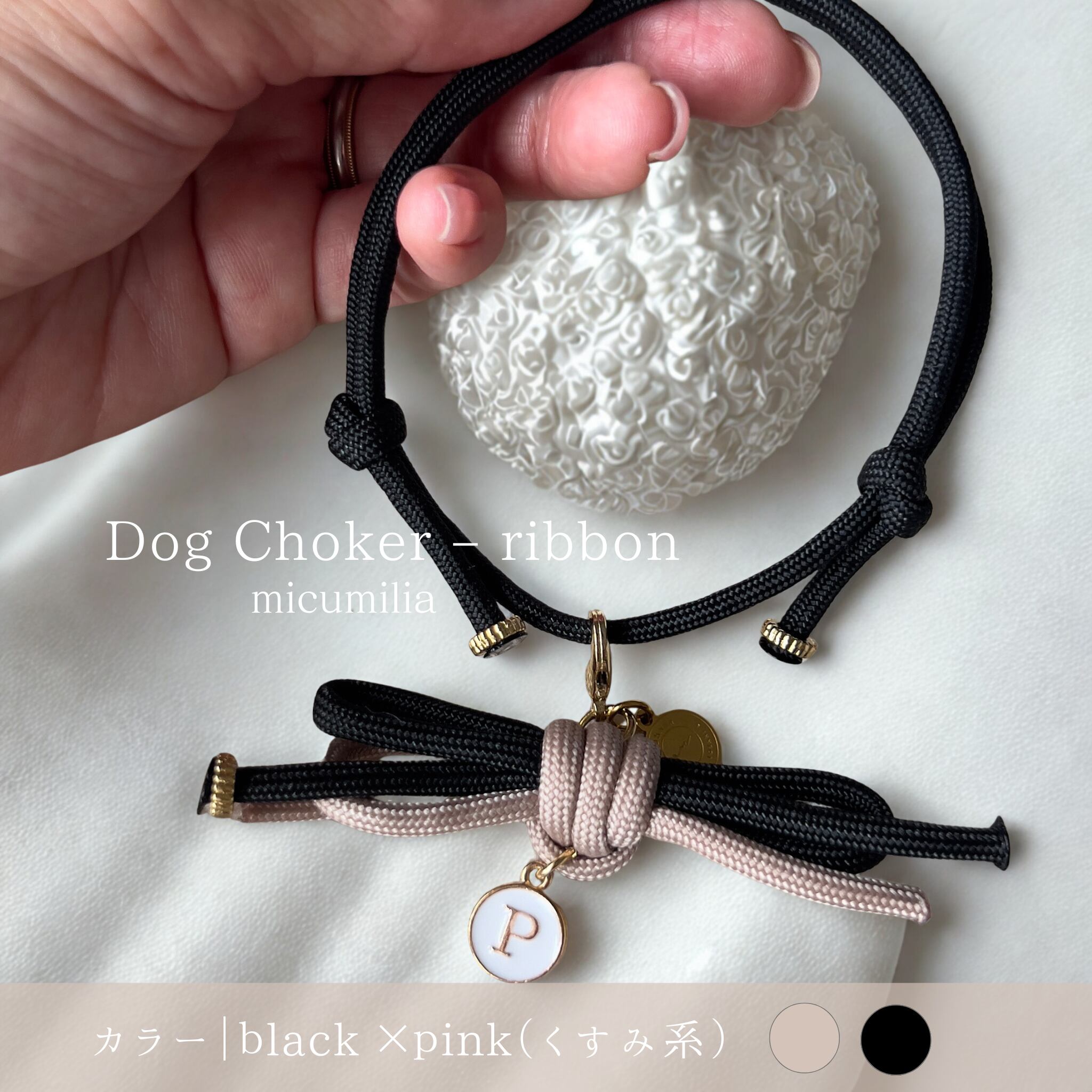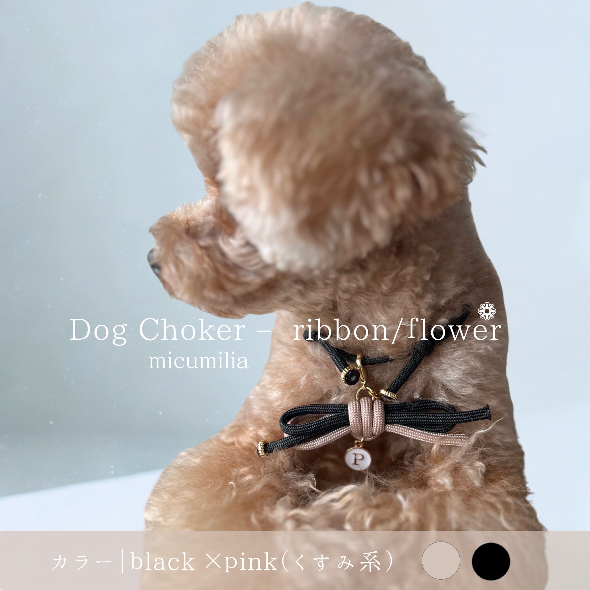 Dog Choker – Ribbon & Flower(Black Base)|ドッグチョーカー – リボン(double)&フラワー(ブラックベース)