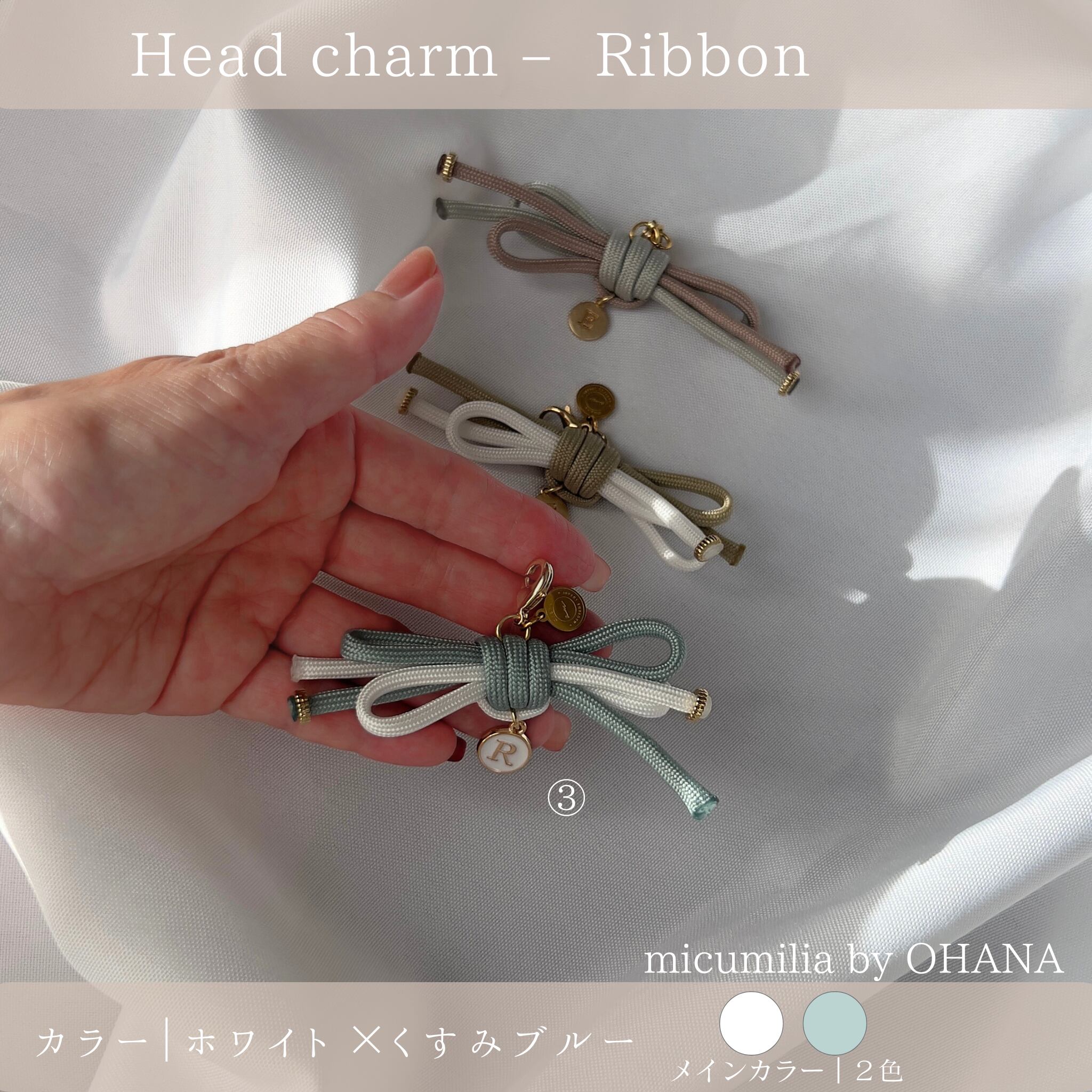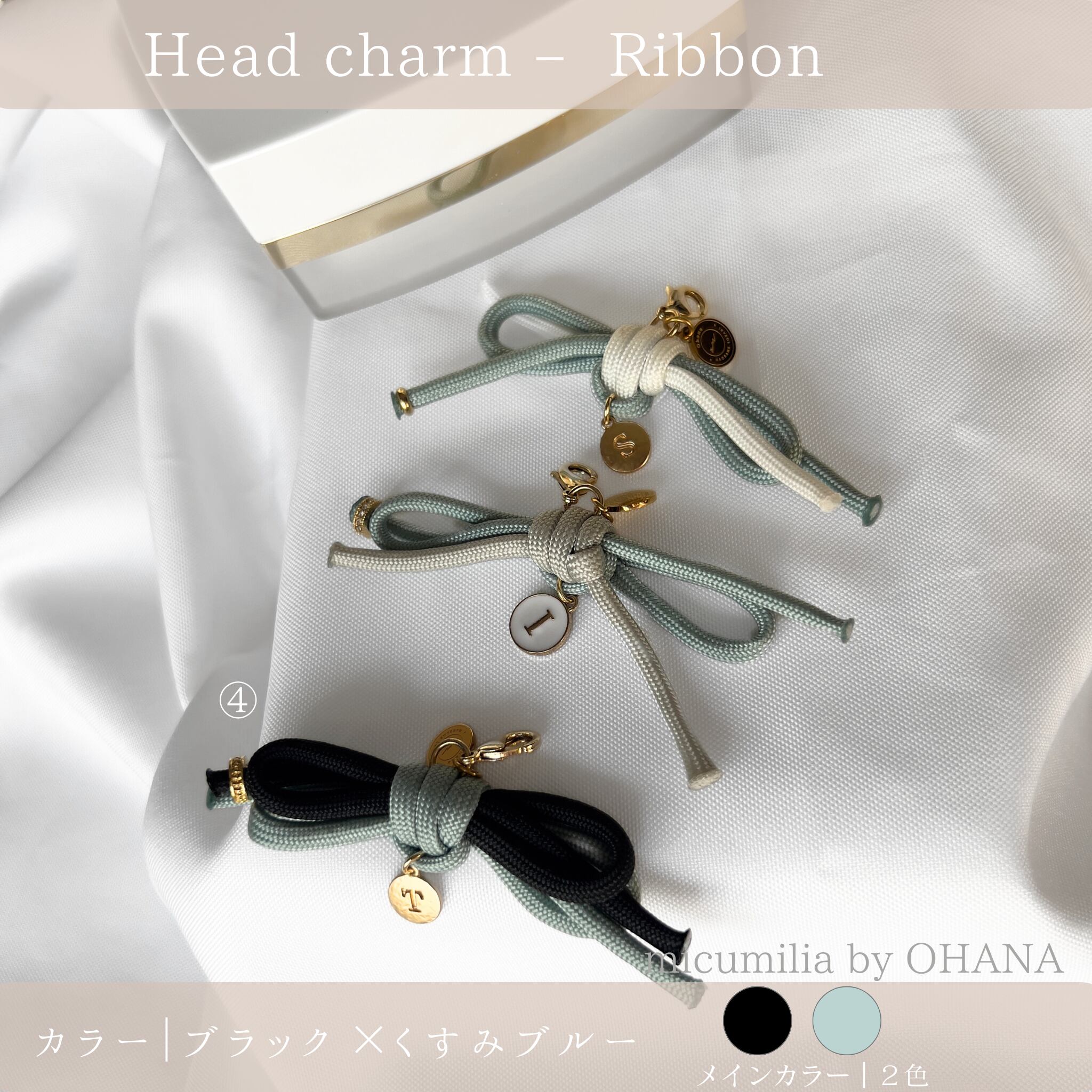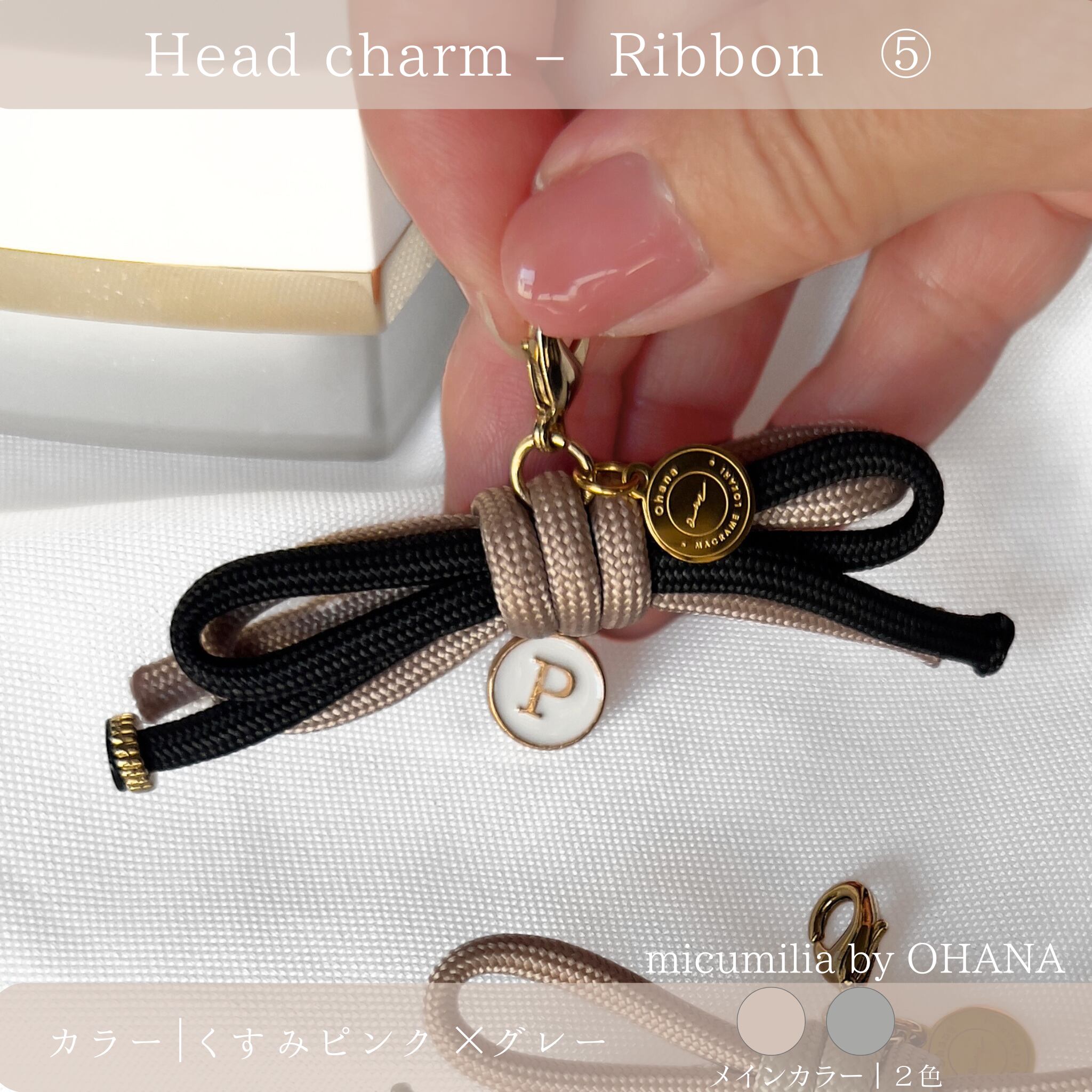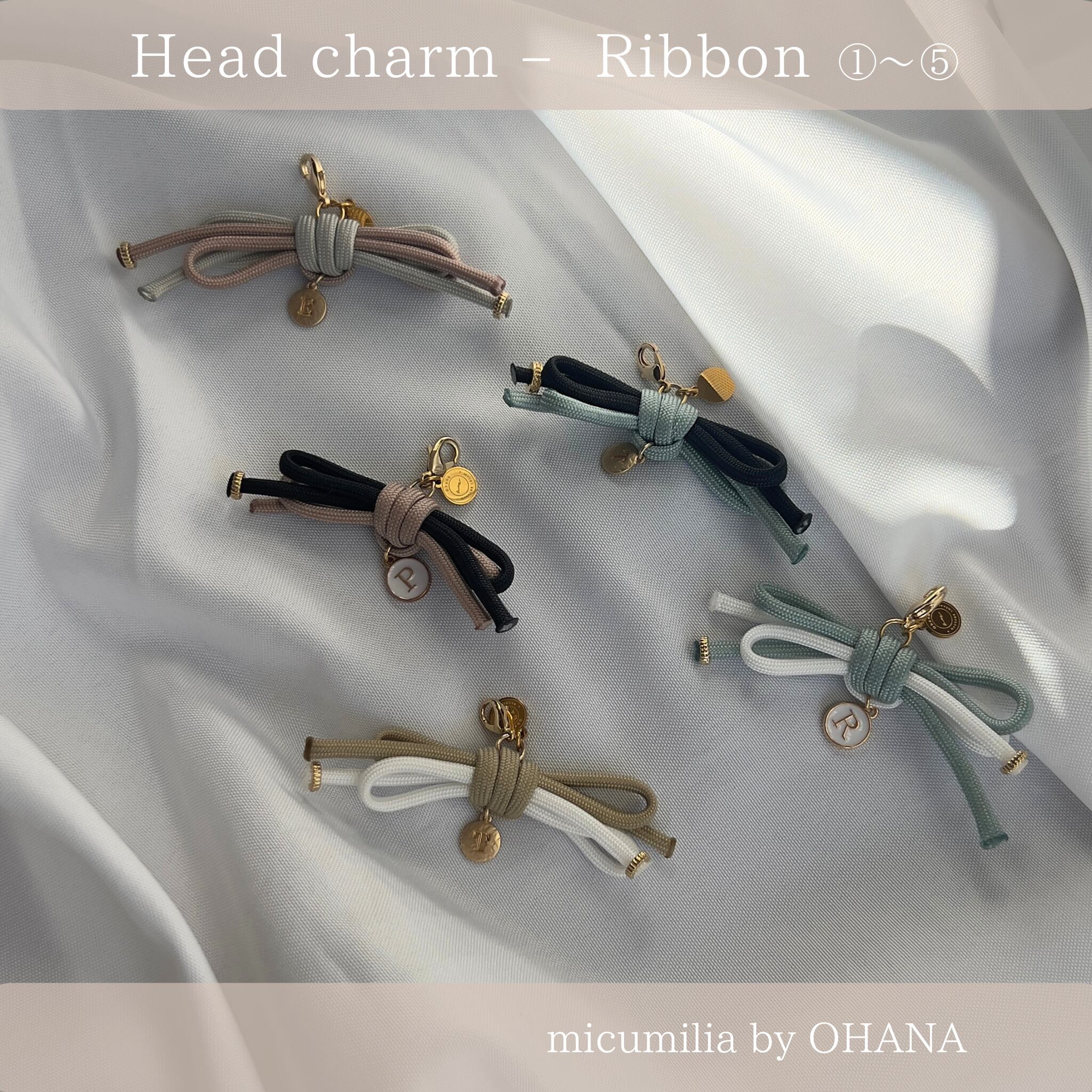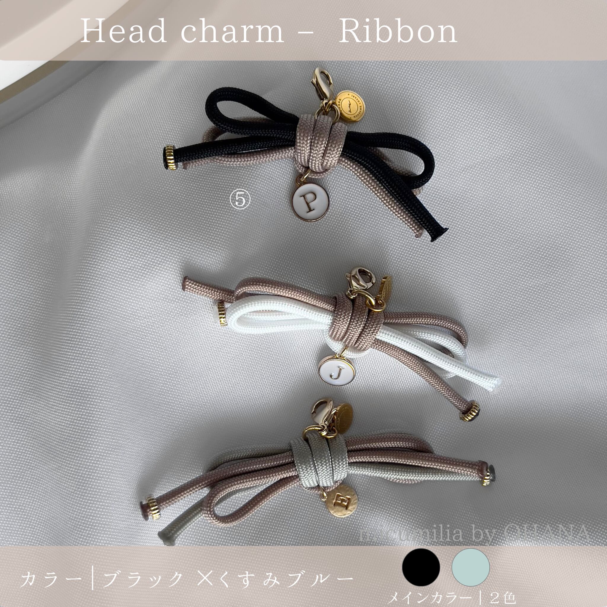 ※本商品ページでは、全8種のうち①〜⑤のリボンチャームをご紹介しています。