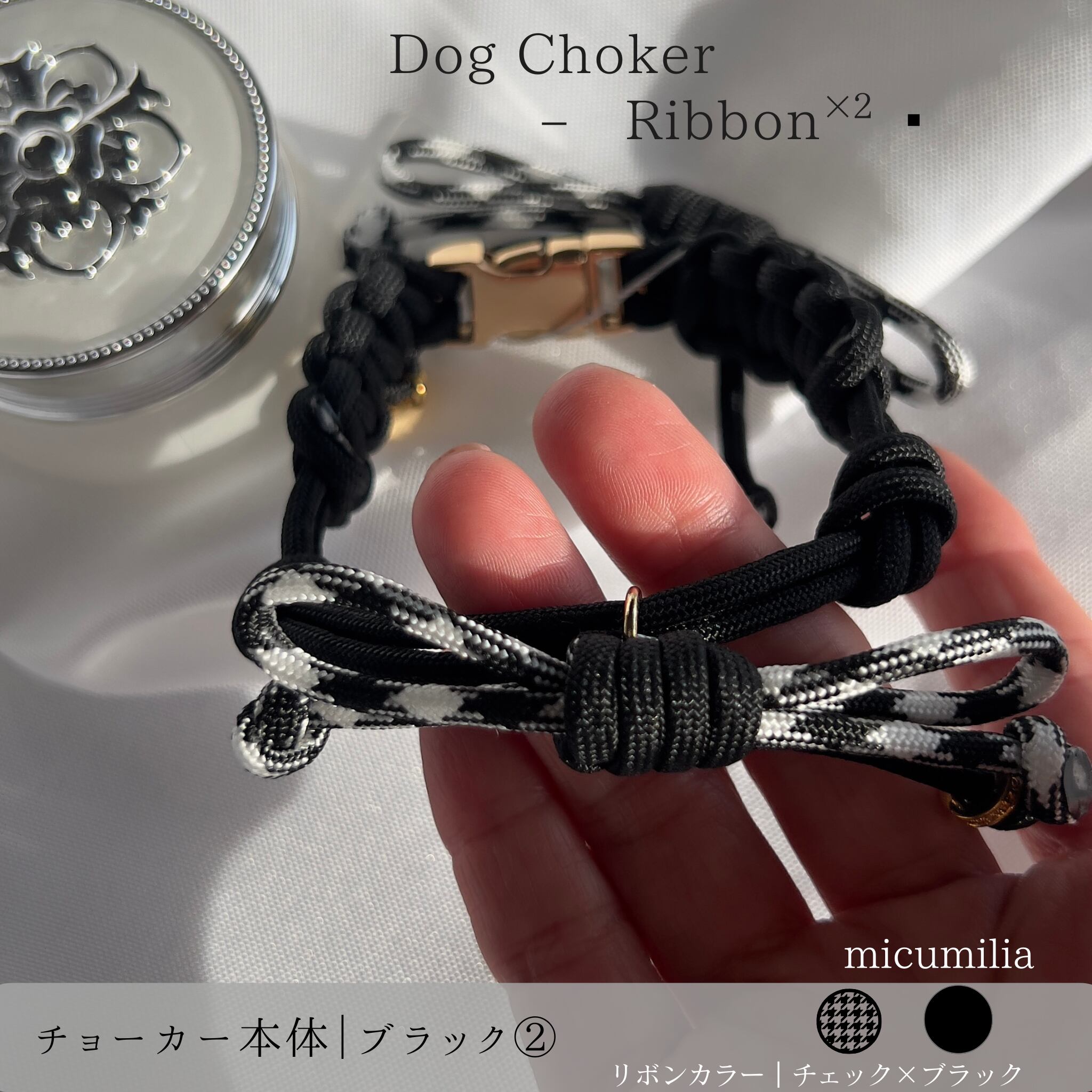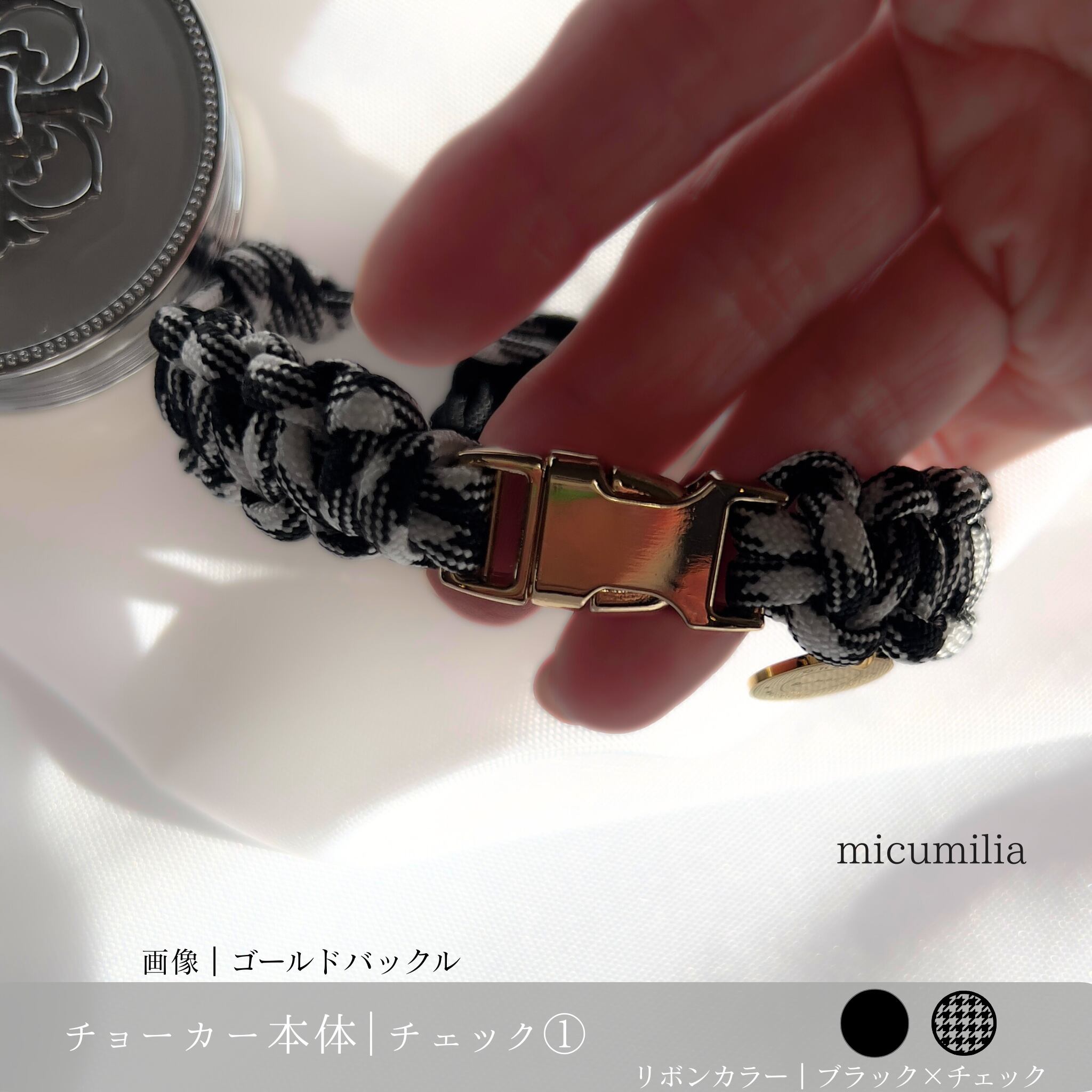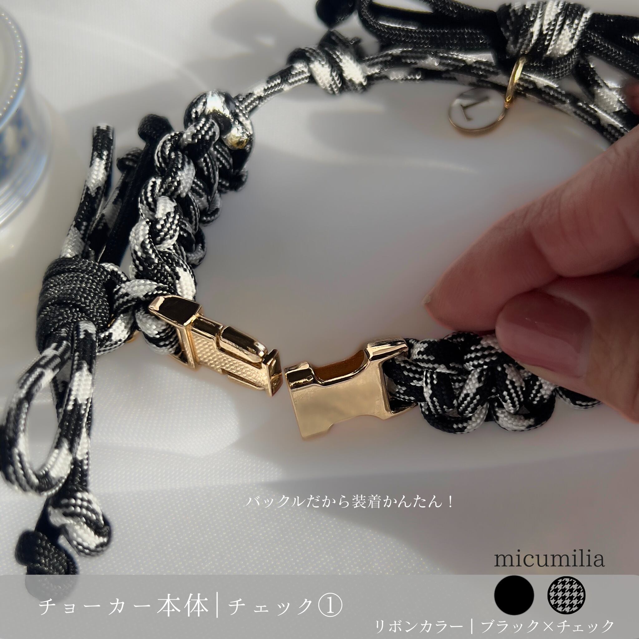 – チョーカー本体:ブラック×ホワイトのチェック柄