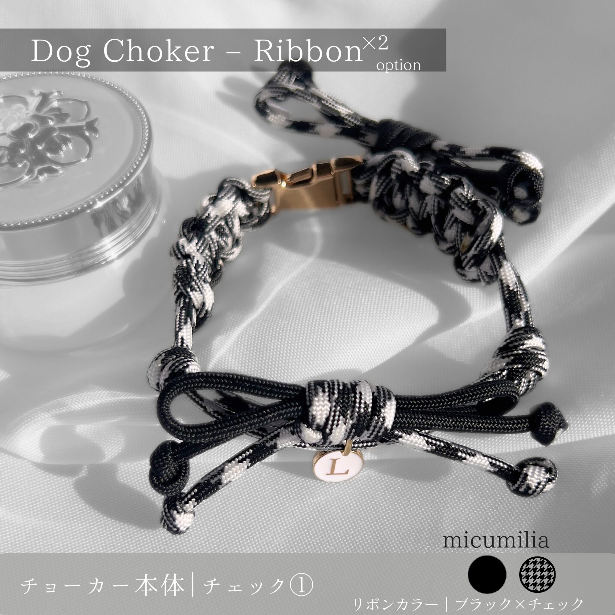 • チョーカー本体:ブラック×ホワイトのチェック柄またはブラック
