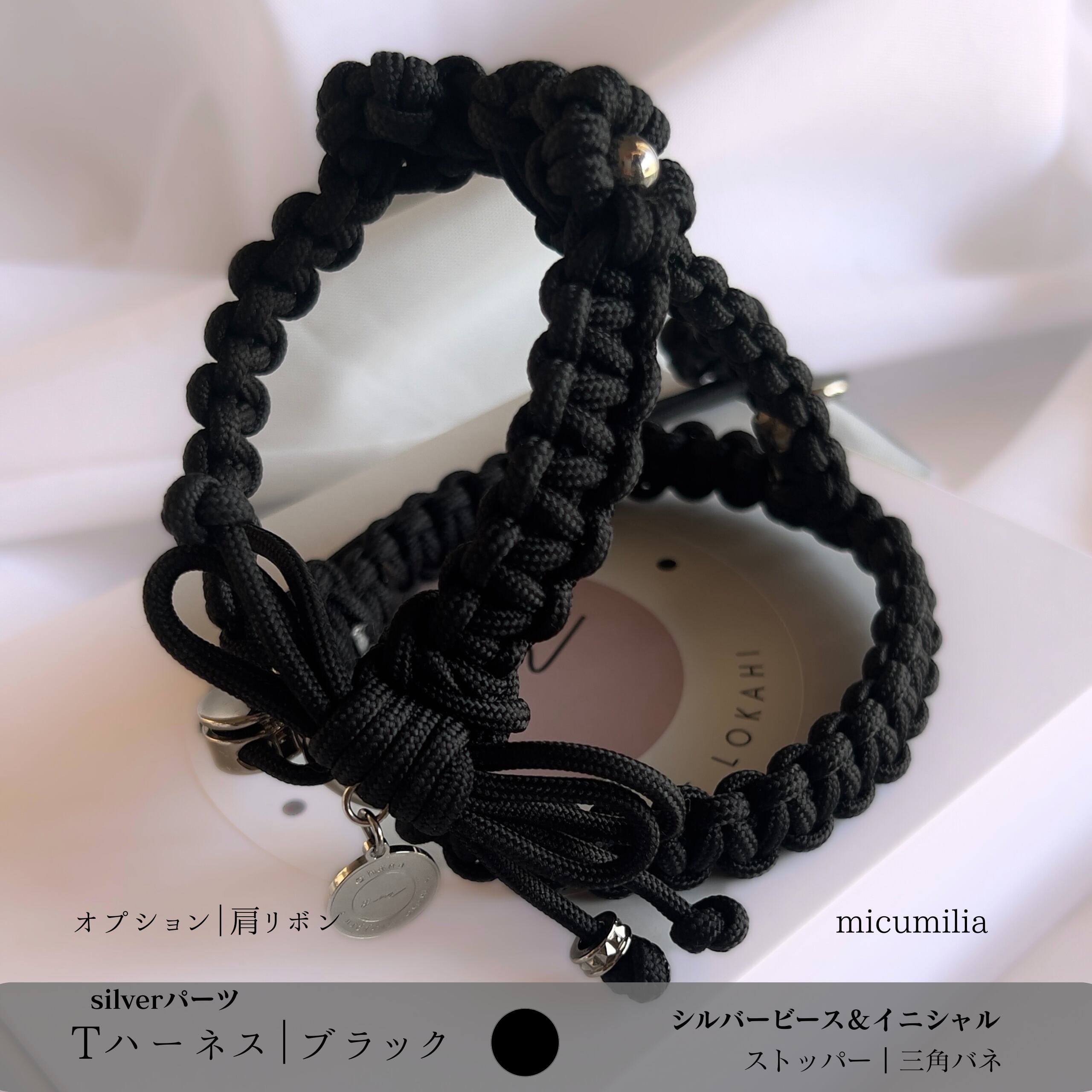 ドッグ “ティ(型)” ハーネス(ブラック×シルバー)