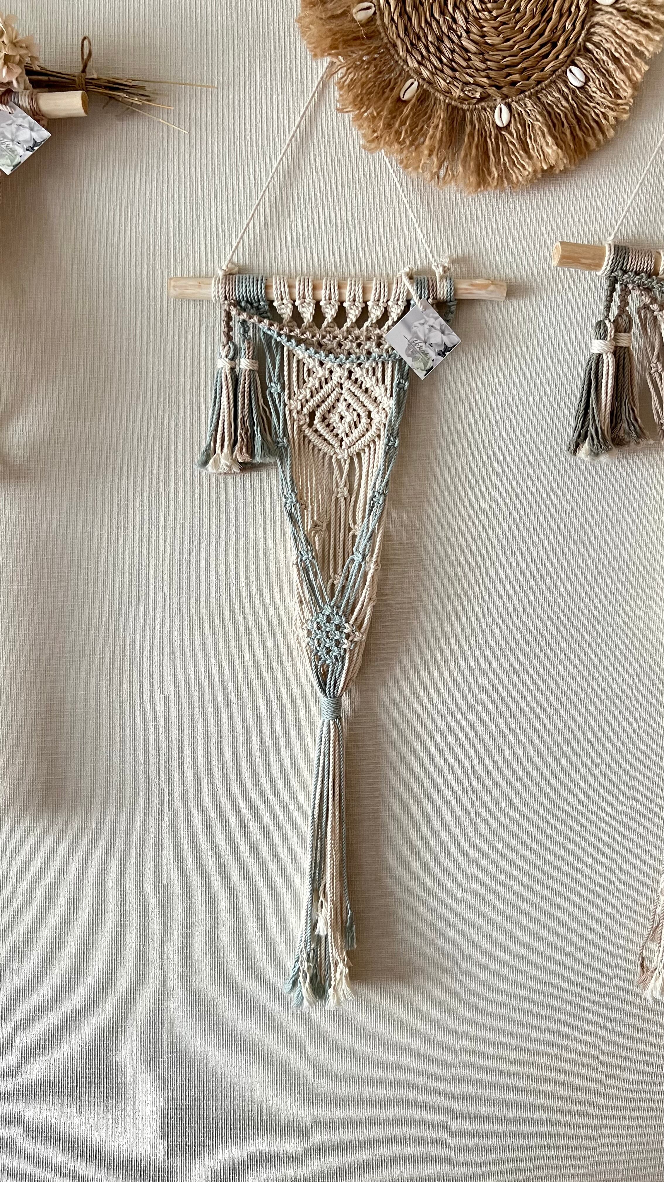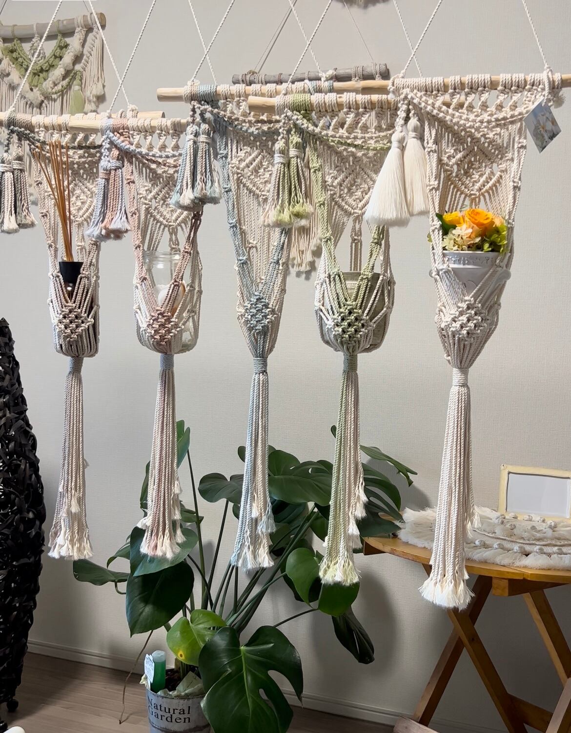 タペストリー風プランツハンガー 2連ネックレスWタッセ(ウォーターグリーン)