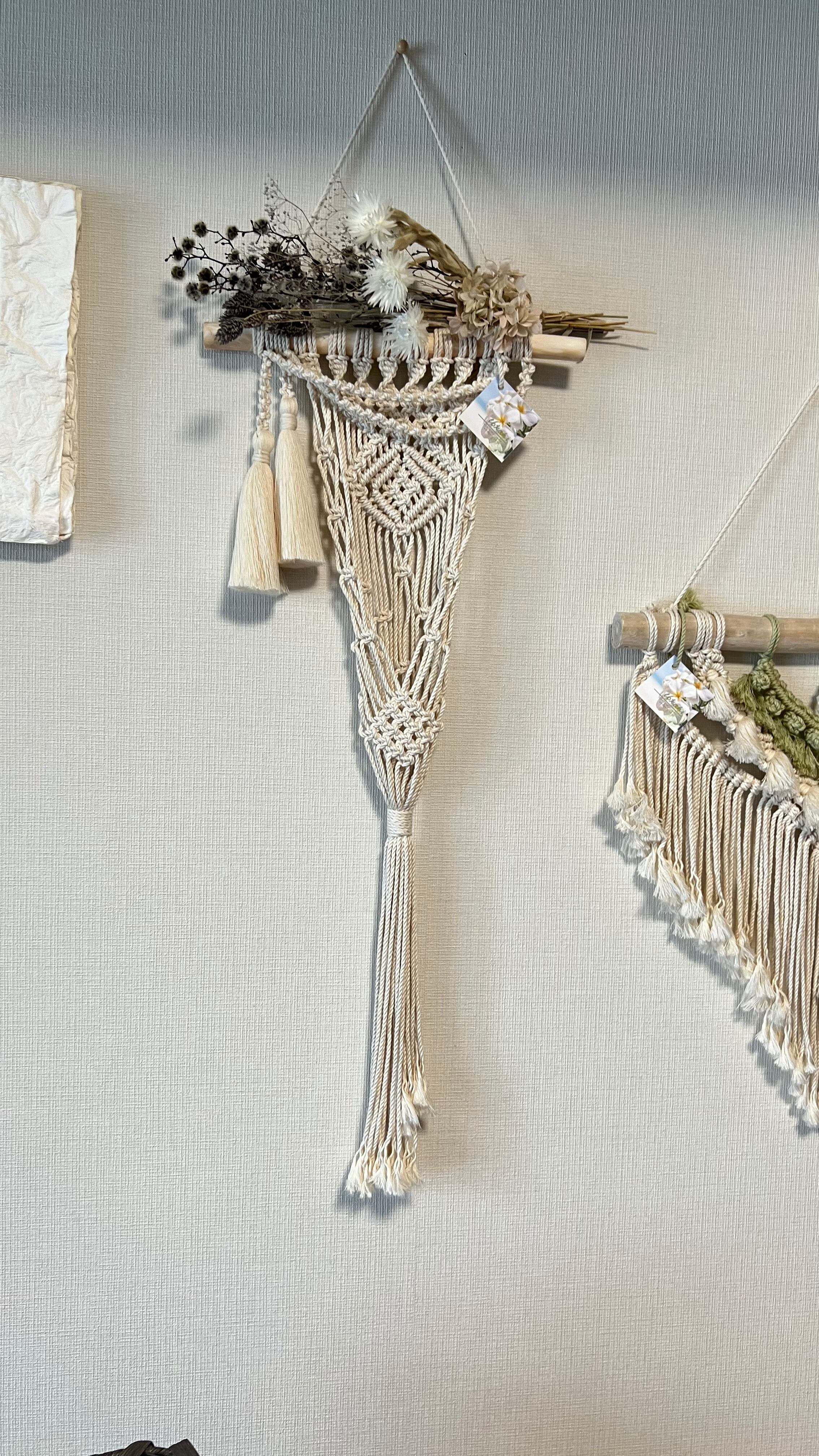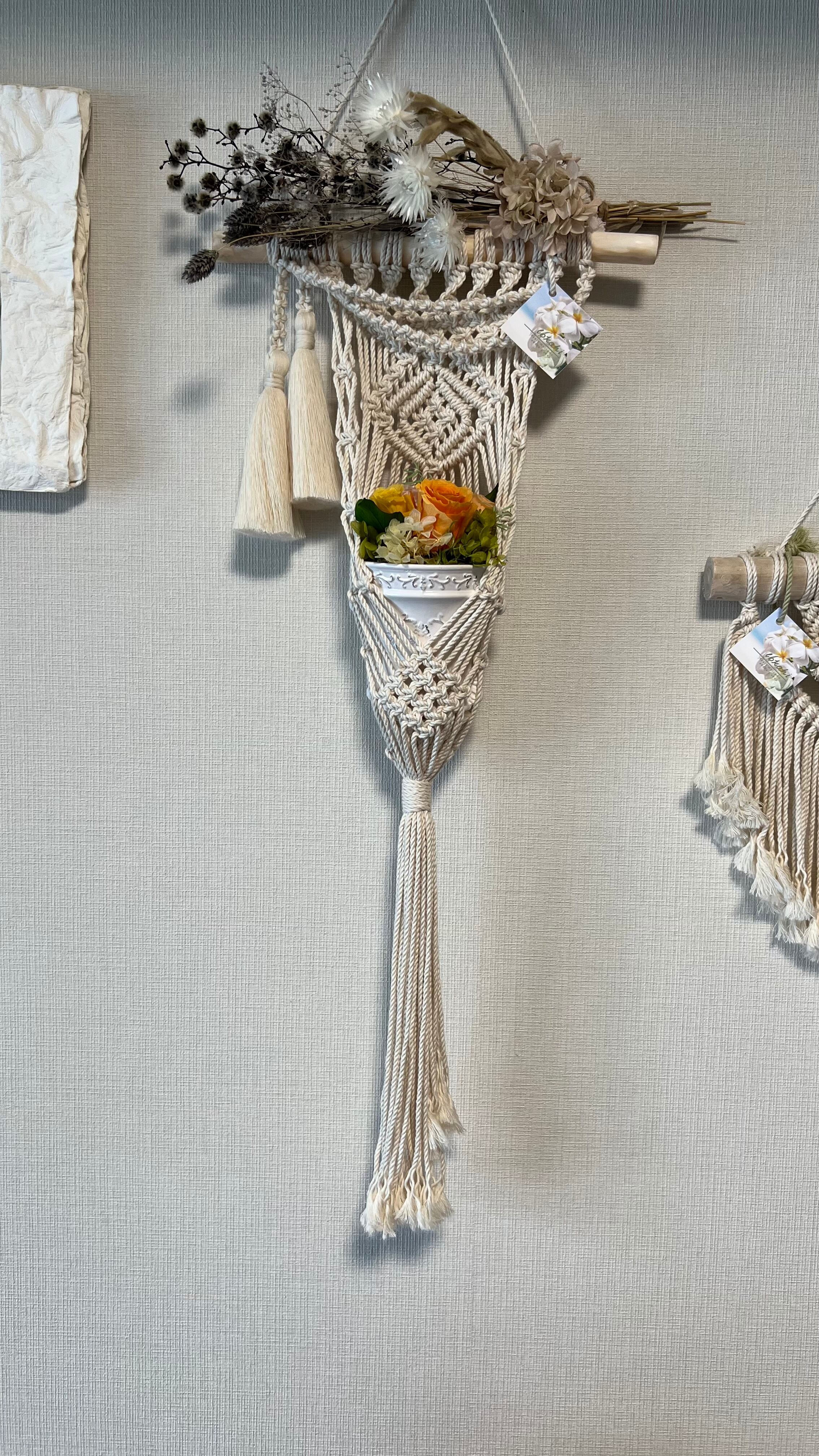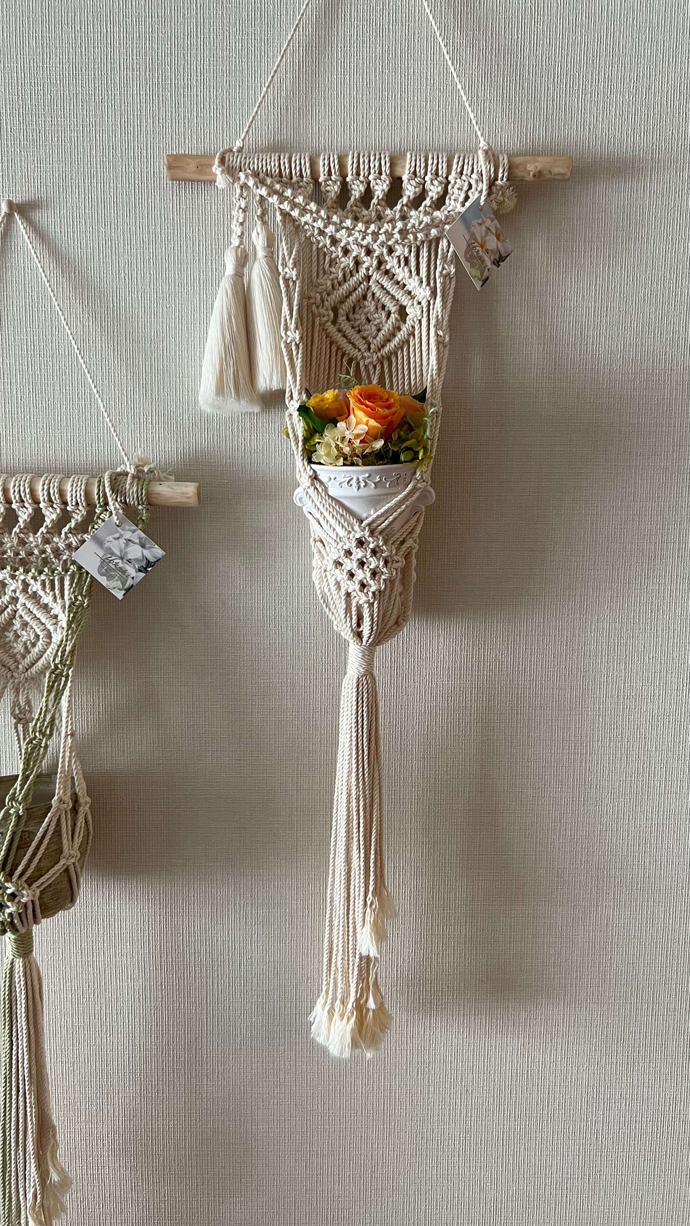 タペストリー風プランツハンガー 2連ネックレスWタッセル(生成)