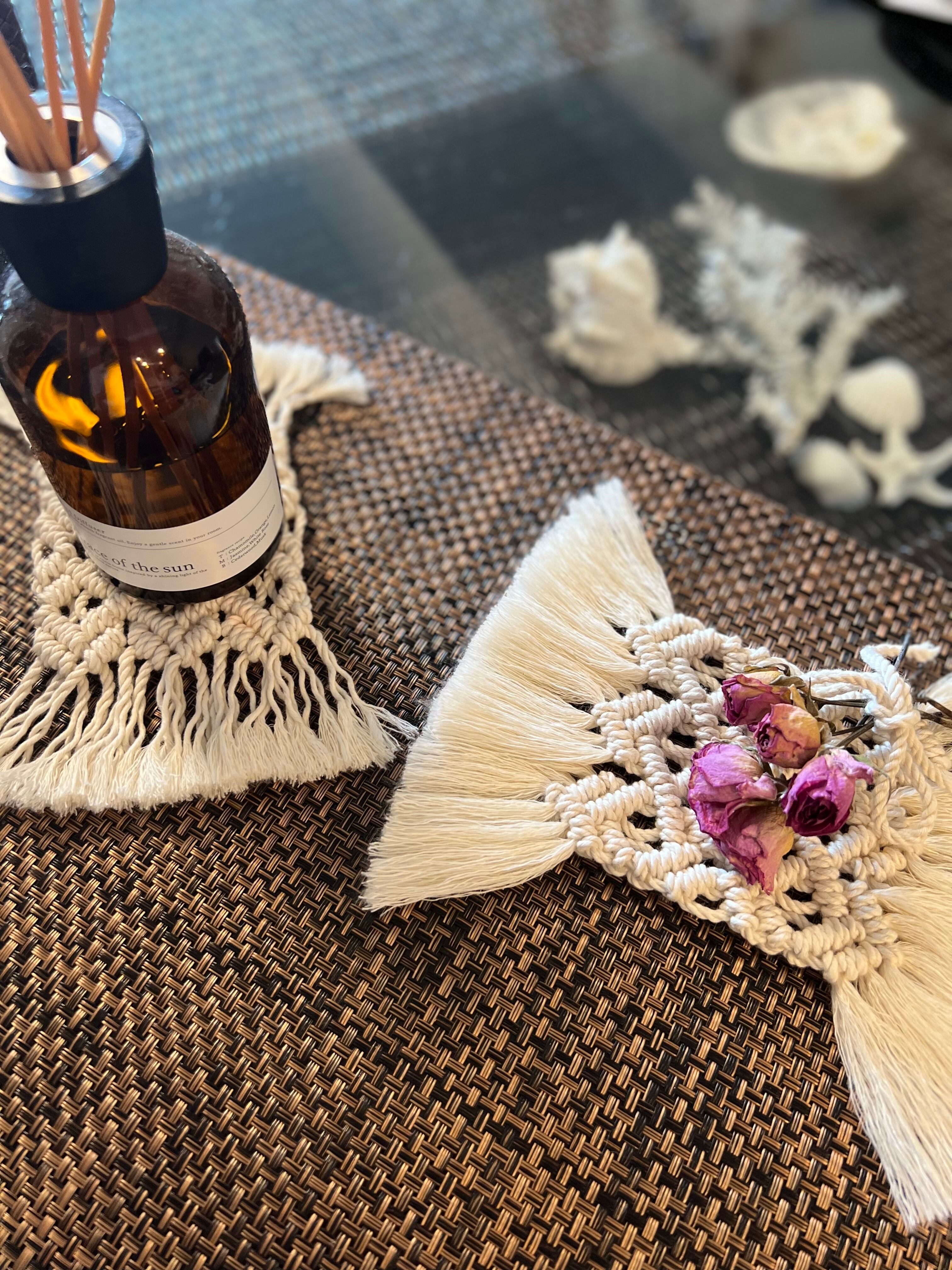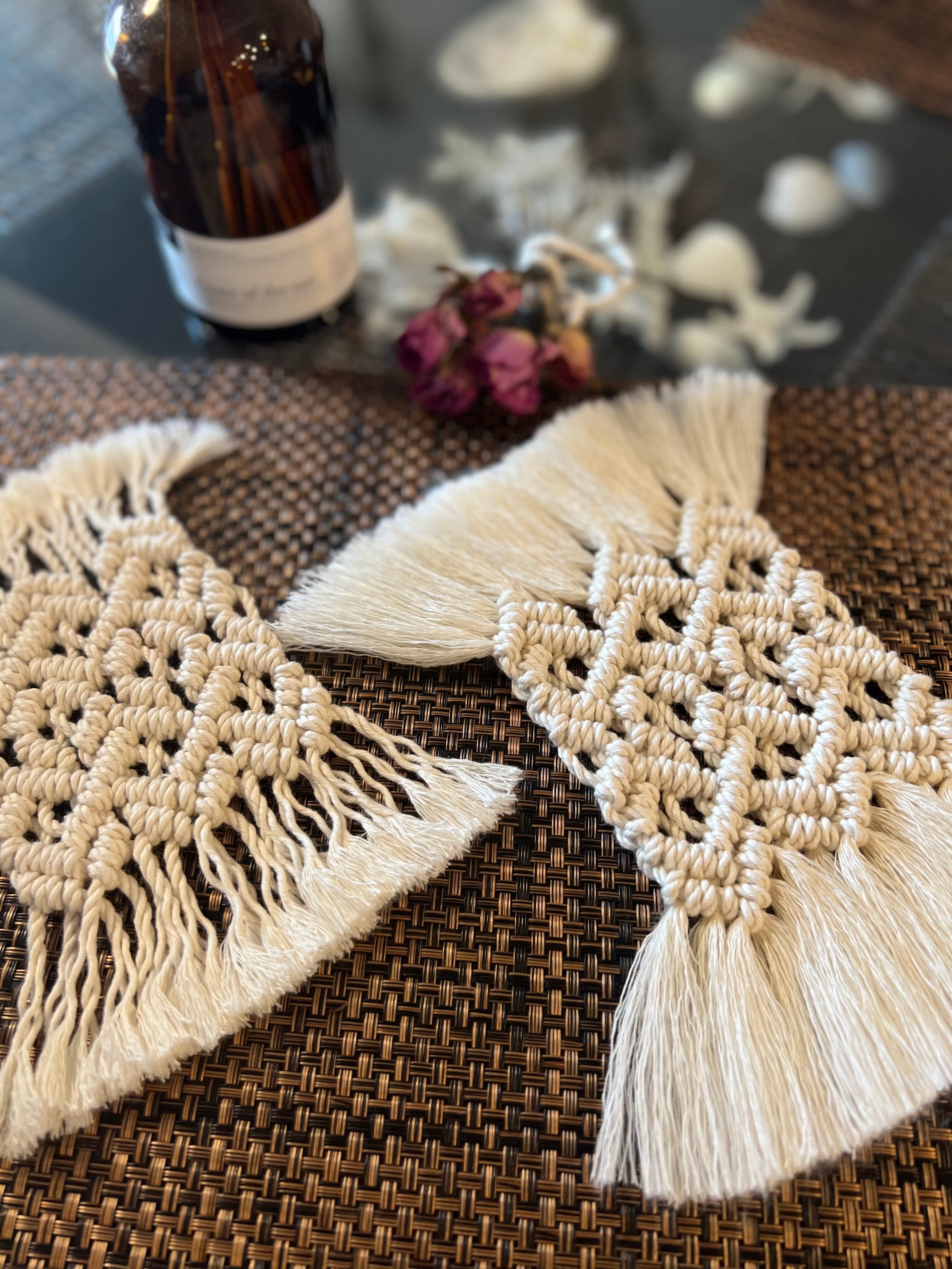 【受注制作】マクラメコースター ダイヤ柄 (生成)Sサイズ