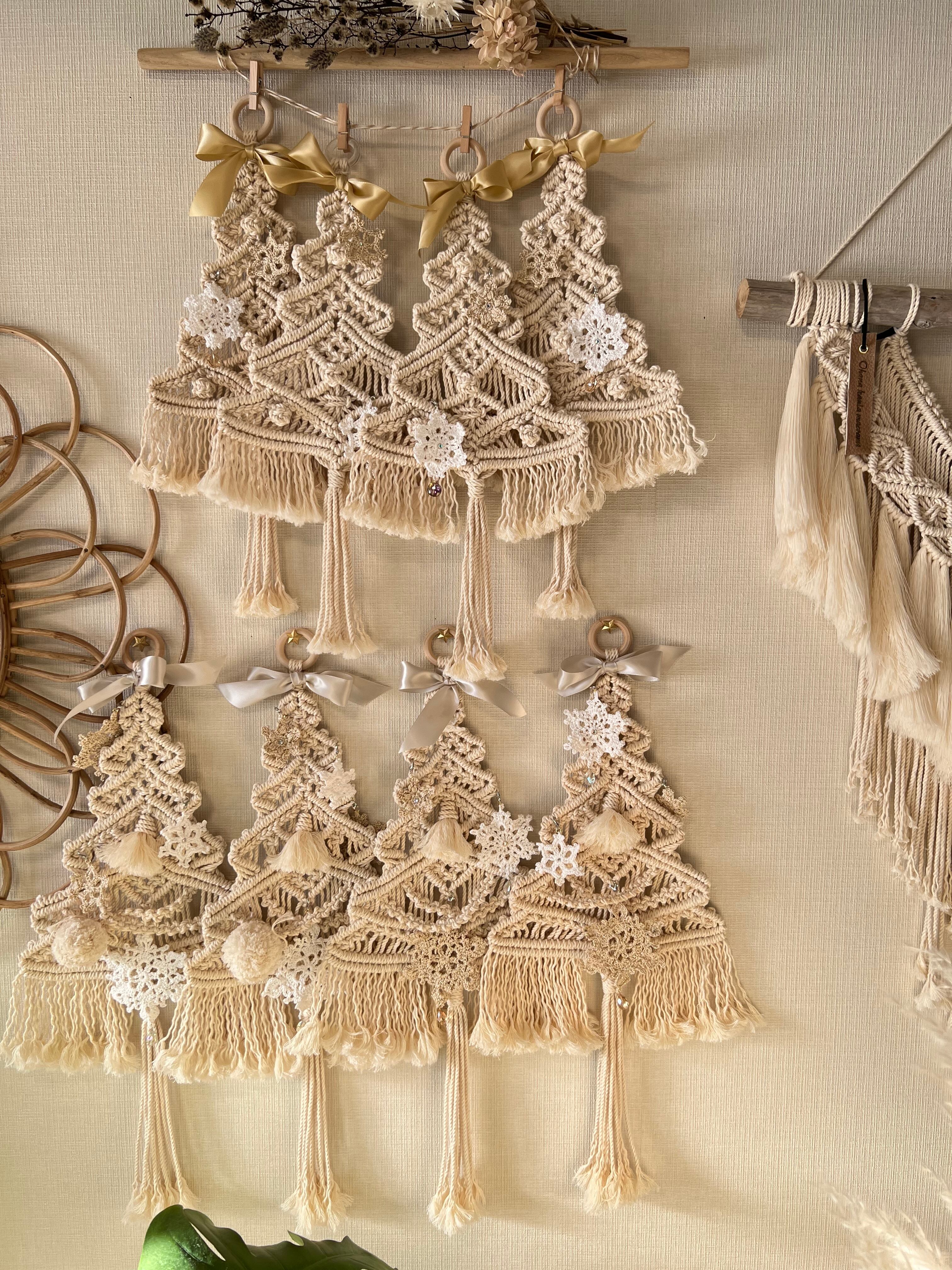 マクラメクリスマスツリータペストリー☆。.:*・゜ どこにでも飾りやすいサイズ5段ツリー .:*・゜