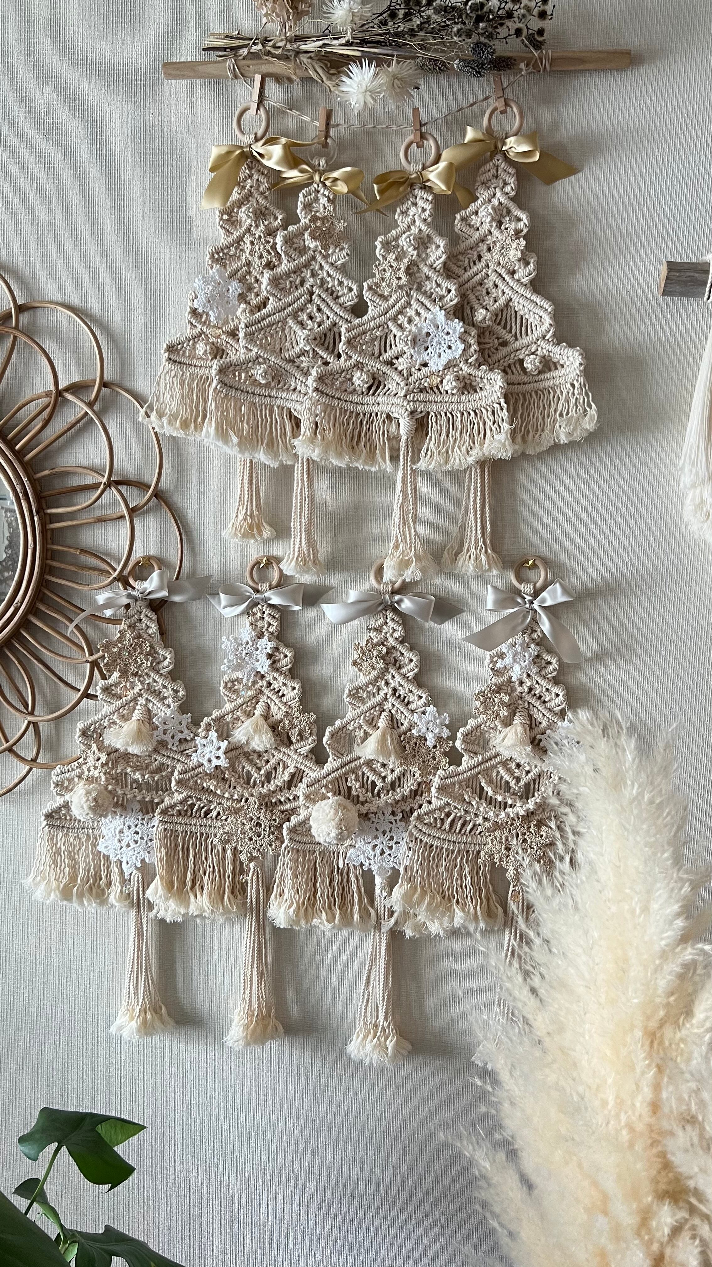 マクラメクリスマスツリータペストリー 5段