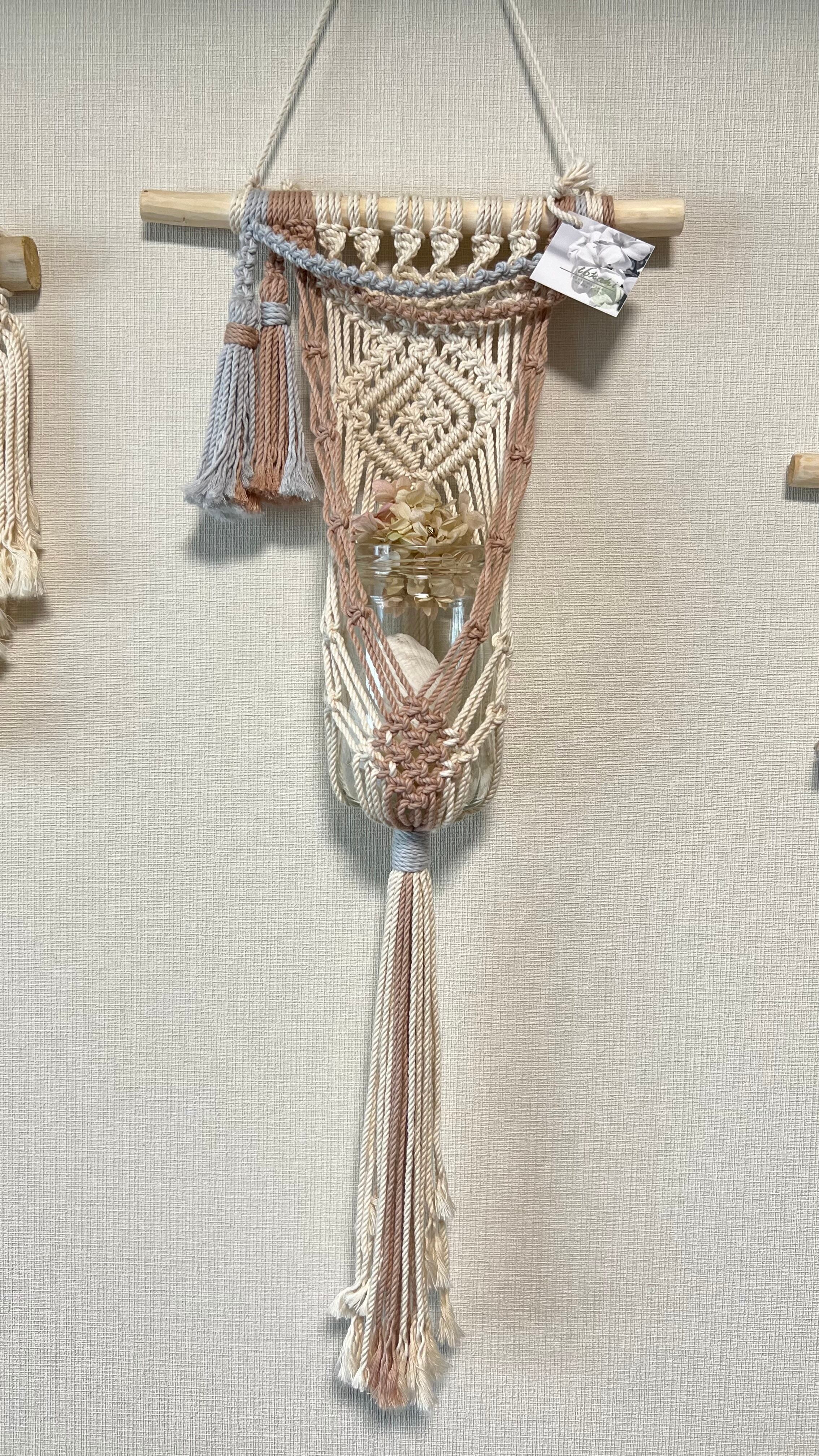 このプランツハンガーは、手作りで丁寧につくられています。暖かみのあるコットンロープが、お部屋に自然なやすらぎをもたらしてくれます。また、2連ネックレスWタッセル(ピンク)は、女性らしい柔らかな雰囲気を醸し出してくれます。