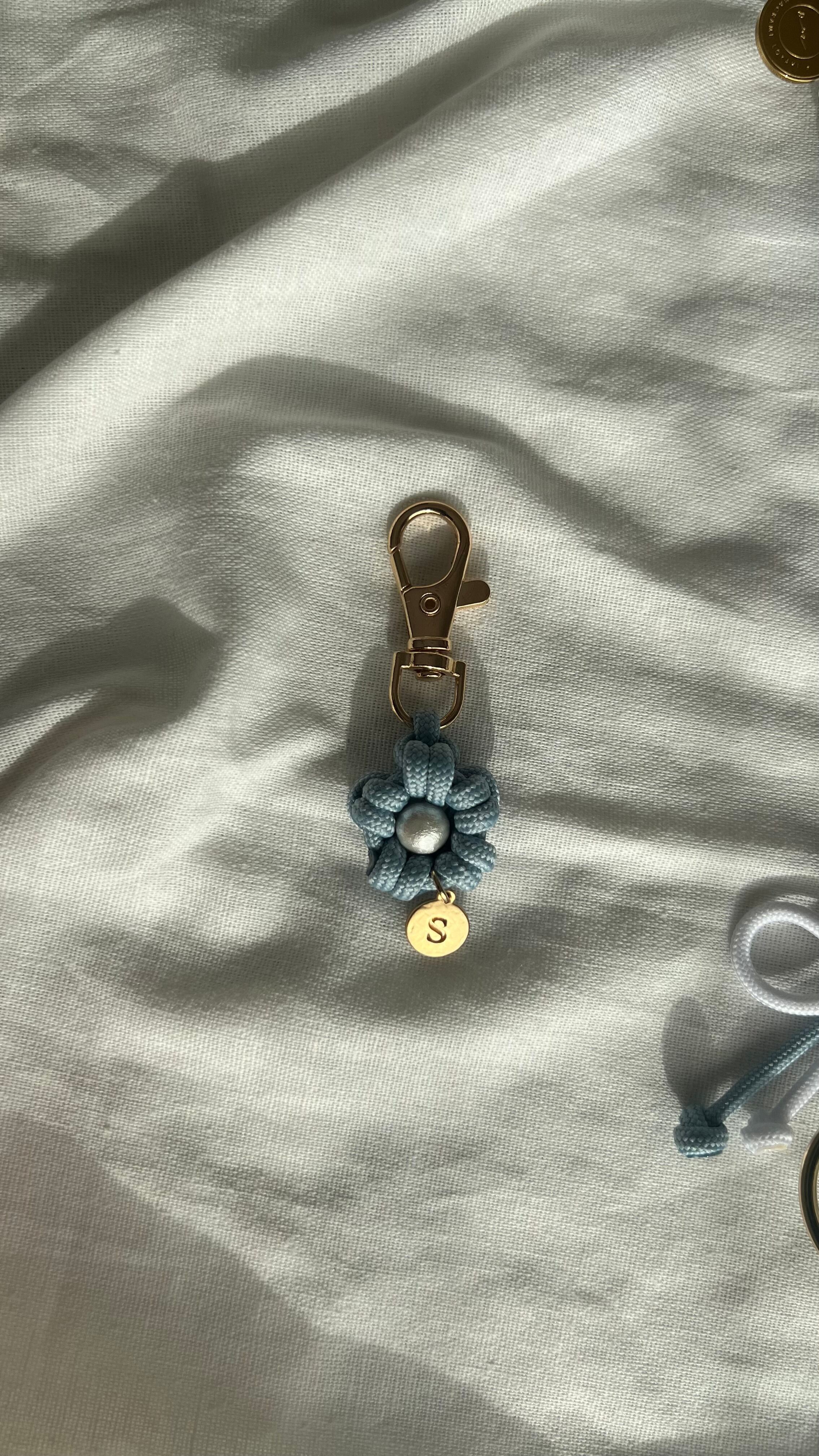 フラワーチャームにA、C、D、E、H、I、J、K、L、M、N、R、S、T、Yの中から今一文字お付けします。ご指定の文字希望の場合は、メッセージにてご連絡ください。ご指定がない場合は、お名前の頭文字をお付けします。