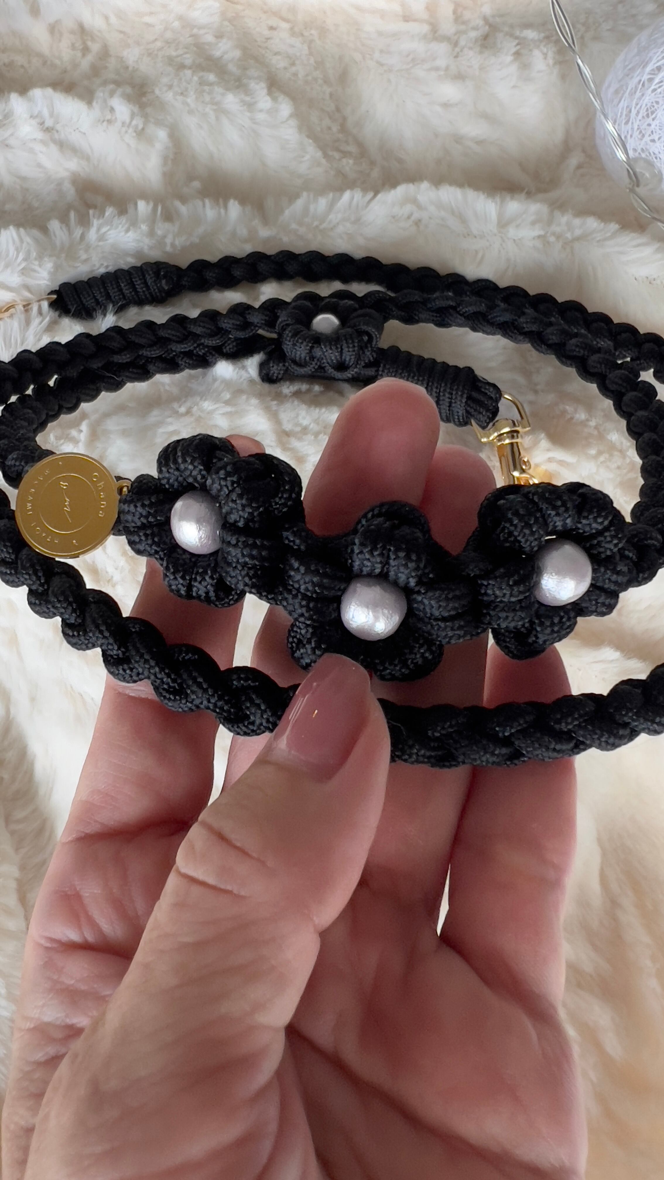 【受注制作】パラコードスマホショルダー:コットンパールお花ぷらんseries